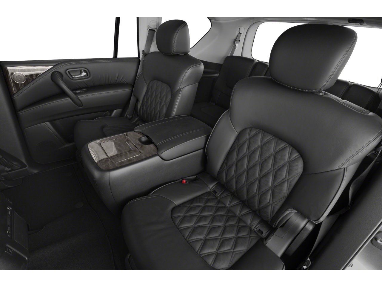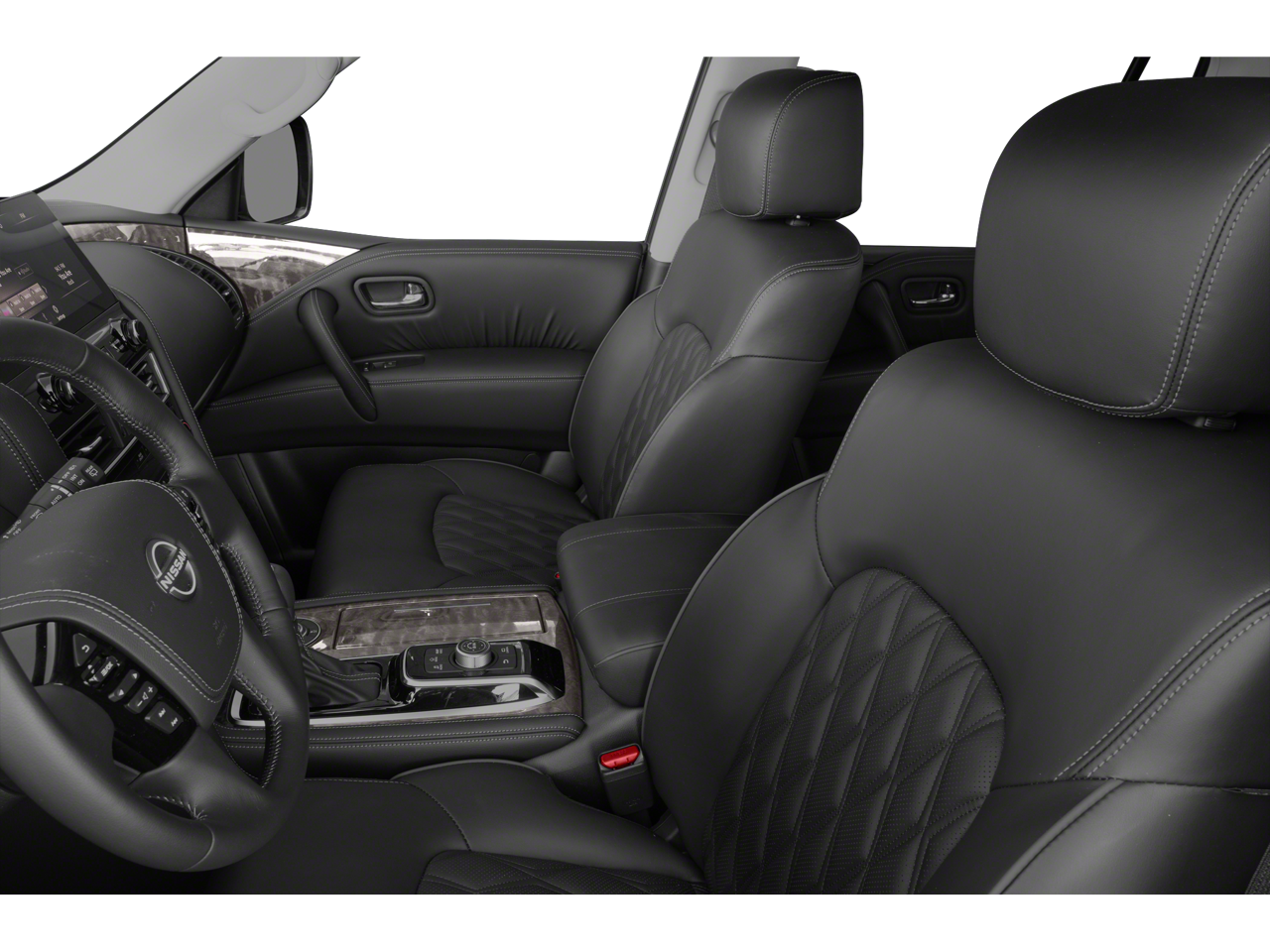 4WD, 13 Speakers, 2.94 Axle Ratio, 2nd Row Captain's Chairs, 2nd Row Center Console w/Padded Armrest, 3rd row seats: split-bench, 4-Wheel Disc Brakes, A/V remote, ABS brakes, Air Conditioning, Alloy wheels, AM/FM radio: SiriusXM, Anti-whiplash front head restraints, Auto High-beam Headlights, Auto tilt-away steering wheel, Auto-dimming door mirrors, Auto-dimming Rear-View mirror, Auto-leveling suspension, Automatic temperature control, Brake assist, Bumpers: body-color, Captain's Chairs Package, Climate-Controlled Front Bucket Seats, Delay-off headlights, Driver door bin, Driver vanity mirror, Dual front impact airbags, Dual front side impact airbags, Electronic Stability Control, Emergency communication system: NissanConnect Services, Exterior Parking Camera Rear, Four wheel independent suspension, Front anti-roll bar, Front Bucket Seats, Front Center Armrest, Front dual zone A/C, Front fog lights, Front reading lights, Fully automatic headlights, Garage door transmitter: HomeLink, Headphones, Heated door mirrors, Heated front seats, Heated rear seats, Heated steering wheel, Illuminated entry, Leather Shift Knob, Low tire pressure warning, Memory seat, Navigation System, NissanConnect featuring Apple CarPlay and Android Auto, Occupant sensing airbag, Outside temperature display, Overhead airbag, Overhead console, Panic alarm, Passenger door bin, Passenger vanity mirror, Power door mirrors, Power driver seat, Power Liftgate, Power moonroof, Power passenger seat, Power steering, Power windows, Quilted Leather Seat Trim, Radio: NissanConnect w/SiriusXM, Rain sensing wipers, Rear air conditioning, Rear anti-roll bar, Rear reading lights, Rear seat center armrest, Rear window defroster, Rear window wiper, Reclining 3rd row seat, Remote keyless entry, Security system, Special Paint - Aspen White, Speed control, Speed-sensing steering, Speed-Sensitive Wipers, Split folding rear seat, Spoiler, Steering wheel memory, Steering wheel mounted audio controls, Tachometer, Telescoping steering wheel, Tilt steering wheel, Traction control, Trip computer, Turn signal indicator mirrors, Variably intermittent wipers, Ventilated front seats, Voltmeter, Wheels: 22 Machine-Faced w/Tinted Clear Coat, 4WD.