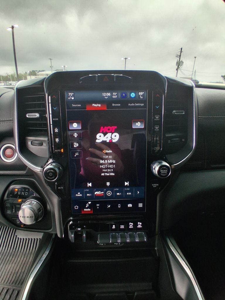#1 Seat Foam Cushion, 10 Speakers, 12 Touchscreen Display, 2nd Row In Floor Storage Bins, 3 Rear Seat Head Restraints, 33 Gallon Fuel Tank, 4 Way Front Headrests, 4-Wheel Disc Brakes, 48V Belt Starter Generator, 4G LTE Wi-Fi Hot Spot, 8.4 Touchscreen Display, ABS brakes, Adjustable pedals, Air Conditioning, All Plant-Installed Decals, All R1 High Radios, All Radio Equipped Vehicles, Alloy wheels, AM/FM radio: SiriusXM, Anti-Spin Differential Rear Axle, Apple CarPlay, Apple CarPlay/Android Auto, Audio memory, Auto High Beam Headlamp Control, Auto-dimming door mirrors, Auto-Dimming Exterior Driver Mirror, Auto-dimming Rear-View mirror, Automatic temperature control, Black Interior Accents, Body Color Door Handles, Body Color Exterior Mirrors, Body Color Front Bumper, Body Color Premium Power Mirrors, Body Color Rear Bumper w/Step Pads, Brake assist, Bucket Seats, Bumpers: chrome, Chrome Exterior Mirrors, Compass, Connected Travel & Traffic Services, Connectivity - US/Canada, Convex Wide-Angle Mirror Insert, Delay-off headlights, Delete LED Lamp - Floor Console Bin, Disassociated Touchscreen Display, Dome Dual LED Reading Lamp, Driver door bin, Driver Seat Memory, Driver vanity mirror, Dual front impact airbags, Dual front side impact airbags, Dual-Pane Panoramic Sunroof, Electronic Stability Control, Exterior Mirrors Courtesy Lamps, Exterior Mirrors w/Heating Element, Exterior Mirrors w/Memory, Exterior Mirrors w/Supplemental Signals, Foam Bottle Insert (Door Trim Panel), For Details, Visit DriveUconnect.com, For More Info, Call 800-643-2112, Front anti-roll bar, Front Center Armrest w/Storage, Front dual zone A/C, Front fog lights, Front reading lights, Front Seat Back Map Pockets, Front wheel independent suspension, Full Length Upgraded Floor Console, Fully automatic headlights, Garage door transmitter, Global Telematics Box Module (TBM), Google Android Auto, GPS Antenna Input, GPS Navigation, Grille Surround 3 Body Color Tex 2 Black, HD Radio, Heated door mirrors, Heated Front Seats, Heated front seats, Heated Steering Wheel, Heated steering wheel, Heavy-Duty Engine Cooling, Illuminated entry, Integrated Center Stack Radio, Integrated Voice Command w/Bluetooth®, Laramie Level A Equipment Group (DISC), Leather steering wheel, Leather Trim 40/20/40 Bench Seat, Leather Trimmed Bucket Seats, LED Dome/Reading Lamp, Low tire pressure warning, Memory seat, MOPAR Front & Rear Rubber Floor Mats, Occupant sensing airbag, Outside temperature display, Overhead airbag, Overhead console, Panic alarm, ParkSense Front/Rear Park Assist w/Stop, ParkView Rear Back-Up Camera, Passenger door bin, Passenger vanity mirror, Pedal memory, Power 2-Way Driver Lumbar Adjust, Power 2-Way Passenger Lumbar Adjust, Power 8-Way Driver & Passenger Seats, Power door mirrors, Power driver seat, Power passenger seat, Power steering, Power windows, Power-Folding Mirrors, Quick Order Package 27H Laramie, Radio data system, Radio: Uconnect 5 Nav w/12.0 Display, Radio: Uconnect 5 W w/8.4 Display, Rain Sensitive Windshield Wipers, Rear 60/40 Folding Seat, Rear 60/40 Folding Split Recline Seat, Rear anti-roll bar, Rear seat center armrest, Rear step bumper, Rear window defroster, Remote keyless entry, Remote Tailgate Release, Security system, SiriusXM Radio Service, SiriusXM w/360L, Speed control, Split folding rear seat, Sport Appearance Package, Sport Decal, Sport Performance Hood, Steering wheel mounted audio controls, Tachometer, Telescoping steering wheel, Tilt steering wheel, Traction control, Trailer Brake Control, Trip computer, Turn signal indicator mirrors, Twill Film Appliques, USB Host Flip, Variably intermittent wipers, Ventilated Front Seats, Ventilated front seats, Voltmeter, Wheels: 18 x 8 Aluminum Base Painted, Wheels: 20 x 9 Premium Painted w/Inserts.