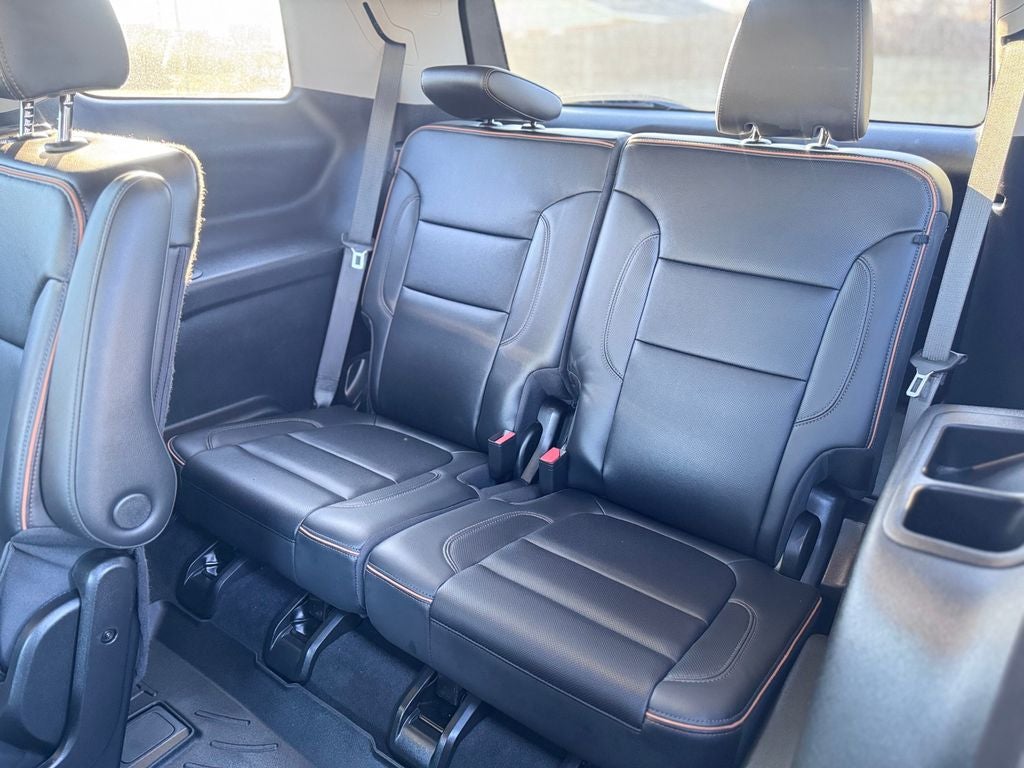 AWD, Jet Black Leather, 170 Amp Alternator, 3.49 Final Drive Axle Ratio, 3rd row seats: split-bench, 4-Way Manual Passenger Seat Adjuster, 4-Wheel Disc Brakes, 6-Passenger (2-2-2 Seating Configuration), 8 Speakers, 8-Way Power Driver Seat Adjuster, 8-Way Power Passenger Seat Adjuster, 8 Multi-Color Enhanced Dr Instrument Info Display, ABS brakes, Air Conditioning, Alloy wheels, AM/FM radio: SiriusXM with 360L, Apple CarPlay/Android Auto, Auto High-beam Headlights, Auto-dimming Rear-View mirror, Automatic temperature control, Bose Premium 8-Speaker Audio System Feature, Brake assist, Bumpers: body-color, Compass, Delay-off headlights, Driver door bin, Driver vanity mirror, Dual front impact airbags, Dual front side impact airbags, Electronic Stability Control, Emergency communication system: OnStar and GMC connected services capable, Four wheel independent suspension, Front anti-roll bar, Front Bucket Seats, Front Center Armrest, Front dual zone A/C, Front fog lights, Front License Plate Bracket, Front reading lights, Fully automatic headlights, Garage door transmitter, HD Surround Vision, Heads-Up Display, Heated & Ventilated Driver & Front Passenger Seats, Heated door mirrors, Heated Driver & Front Passenger Seats, Heated front seats, Heated Rear Outboard Seating Positions, Heated Steering Wheel, Heavy-Duty Cooling System, Hitch Guidance w/Hitch View, Illuminated entry, Knee airbag, Low tire pressure warning, Luxury Package, Memory Package, NAVIGATION, Occupant sensing airbag, Outside temperature display, Overhead airbag, Overhead console, Panic alarm, Passenger door bin, Passenger vanity mirror, Power door mirrors, Power Driver Lumbar Control Seat Adjuster, Power driver seat, Power Liftgate, Power Passenger Lumbar Control Seat Adjuster, Power steering, Power Tilt & Telescopic Steering Column, Power windows, Power-Adjustable Body-Color Outside Heated Mirrors, Preferred Equipment Group 4SB, Preferred Package, Premium Cloth Seat Trim, Radio data system, Radio: AM/FM 8 Diagonal Multi-Touch Navigation, Rear air conditioning, Rear anti-roll bar, Rear reading lights, Rear window defroster, Rear window wiper, Remote keyless entry, Roof rack: rails only, Security system, SiriusXM w/360L, Speed control, Speed-sensing steering, Spoiler, Steering wheel mounted audio controls, Tachometer, Technology Package, Telescoping steering wheel, Tilt steering wheel, Traction control, Trailering Assist Guidelines, Trailering Package, Trip computer, Turn signal indicator mirrors, Variably intermittent wipers, Voltmeter, Wheels: 17 Gloss Black Aluminum, Wireless Apple CarPlay/Wireless Android Auto, AWD, Jet Black Leather.