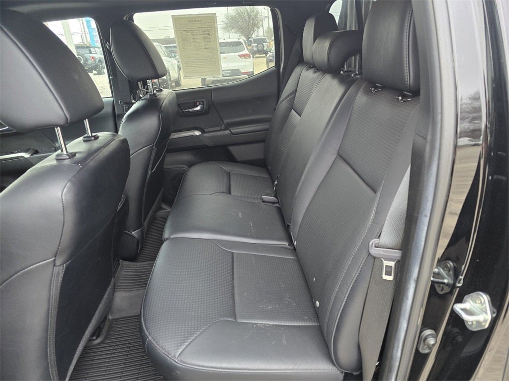 Tacoma Limited V6, 4D Double Cab, 3.5L V6 PDI DOHC 24V LEV3-ULEV70 278hp, 6-Speed Automatic, 4WD, Black, Black Leather, 18 Polished Alloy Wheels, 7 Speakers, ABS brakes, Air Conditioning, Alloy wheels, AM/FM radio: SiriusXM, Anti-whiplash front head restraints, Apple CarPlay/Android Auto, Auto High-beam Headlights, Auto-dimming Rear-View mirror, Automatic temperature control, Axle Ratio: 3.91, Brake assist, Bumpers: body-color, Driver door bin, Driver vanity mirror, Dual front impact airbags, Dual front side impact airbags, Electronic Stability Control, Emergency communication system: Safety Connect (1-year trial), Front anti-roll bar, Front Bucket Seats, Front Center Armrest, Front dual zone A/C, Front fog lights, Front reading lights, Front Seats, Front wheel independent suspension, Fully automatic headlights, Garage door transmitter: HomeLink, Heated door mirrors, Heated front seats, Illuminated entry, Knee airbag, Leather Seat Trim, Leather Shift Knob, Low tire pressure warning, NAVIGATION, Occupant sensing airbag, Outside temperature display, Overhead airbag, Overhead console, Panic alarm, Passenger door bin, Passenger vanity mirror, Power door mirrors, Power driver seat, Power moonroof, Power steering, Power windows, Radio: Premium JBL Audio w/Dynamic Navigation, Rear Parking Sensors, Rear step bumper, Remote keyless entry, Security system, Speed control, Speed-sensing steering, Split folding rear seat, Steering wheel mounted audio controls, Tachometer, Telescoping steering wheel, Tilt steering wheel, Traction control, Trip computer, Turn signal indicator mirrors, Variably intermittent wipers, Tacoma Limited V6, 4D Double Cab, 3.5L V6 PDI DOHC 24V LEV3-ULEV70 278hp, 6-Speed Automatic, 4WD, Black, Black Leather.